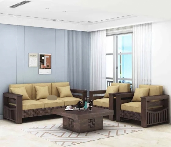 This sofa is crafted with high-quality fabric and durable wood options — Eucalyptus or Marandi, based on customer preference. Both woods ensure long-lasting strength. It features 40-density foam, designed to maintain comfort and shape for over 10 years without any issues( the prices are for 5 seater sofa)