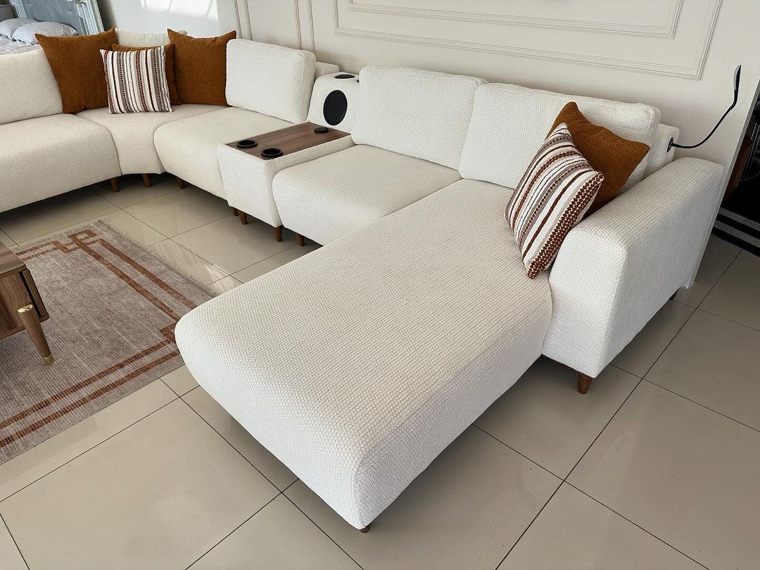 This sofa is crafted with high-quality fabric and durable wood options — Eucalyptus or Marandi, based on customer preference. Both woods ensure long-lasting strength. It features 40-density foam, designed to maintain comfort and shape for over 10 years without any issues.